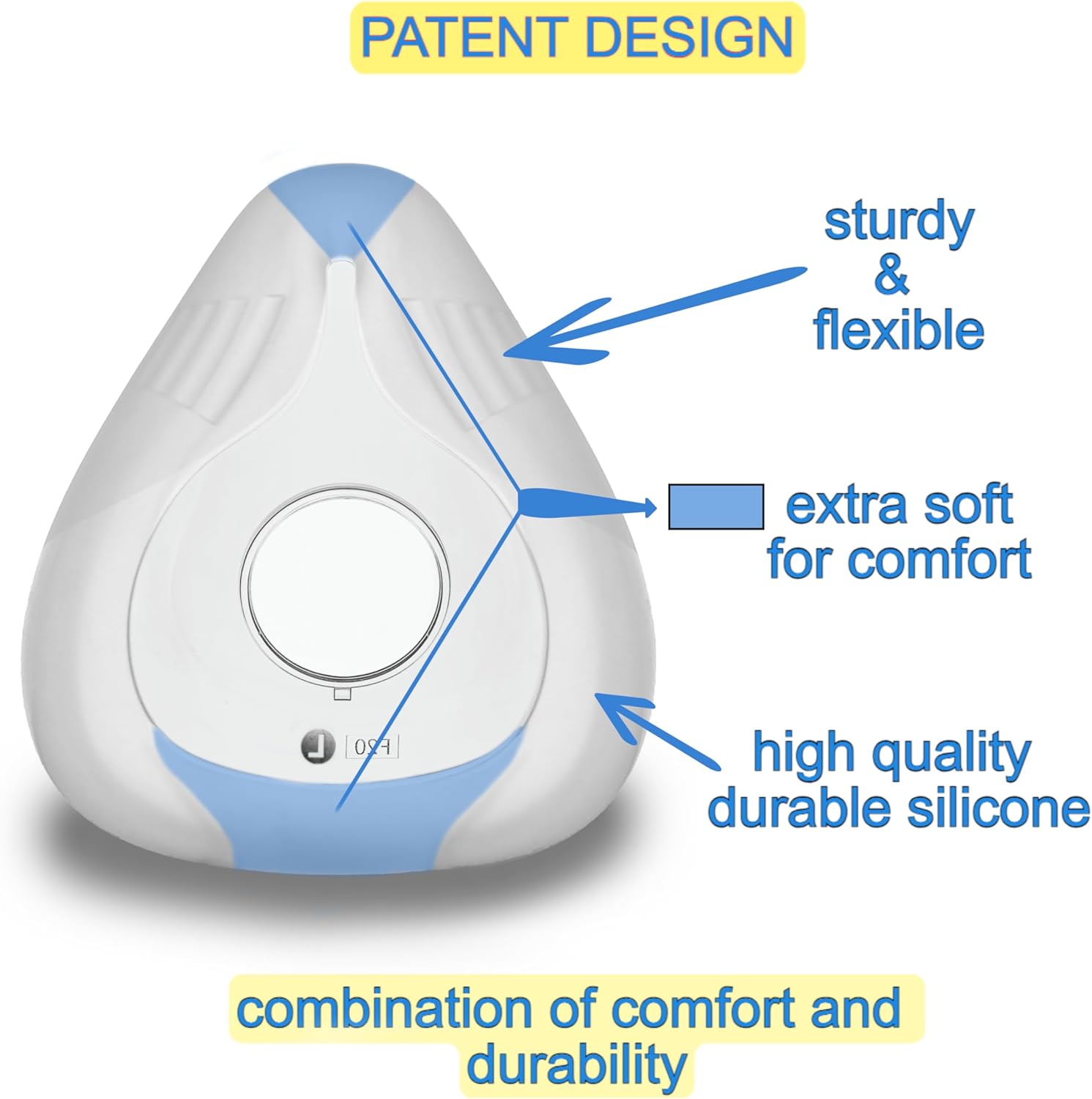 Мекият и гъвкав силикон се адаптира към контурите на лицето, като намалява дразненето и натиска, особено при по-продължителна употреба.